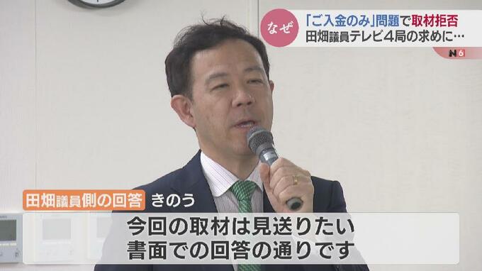田畑議員の反応:「今回の取材は見送りたい。書面での回答の通りです」