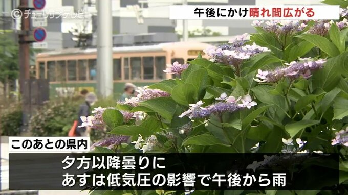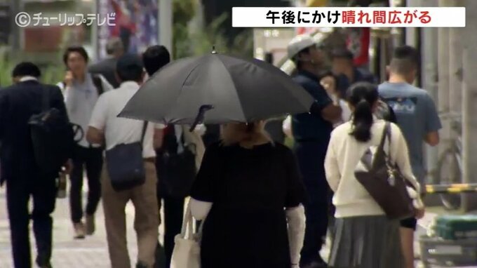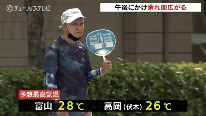 このあとの県内は次第に晴れ間が広がる予想で、日中の最高気温は富山で平年よりやや高めの28℃、高岡市の伏木は涼しい海風の影響を受け平年並みの26℃を予想しています。