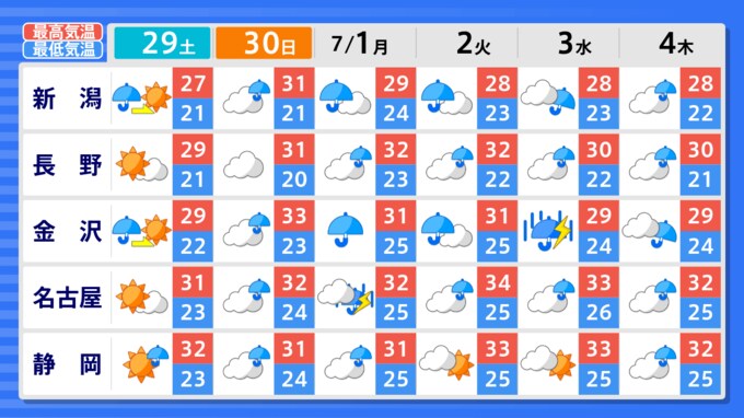 日本の“北”と“南”がこの時期としては「10年に1度」程度の高温になる見込み 7月3日ごろから 気象庁発表【29日からの全国週間天気予報あり】 2024年6月27日(木) 14:51 国内 29日以降の全国の週間予報