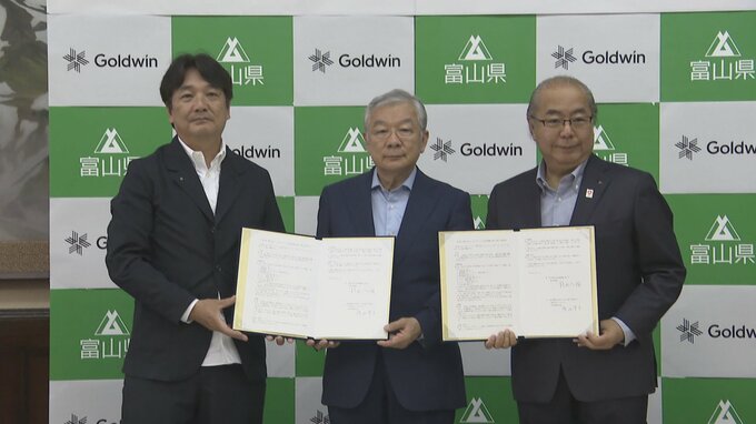 27日富山県と小矢部市に本店を置くスポーツ衣料品メーカー・ゴールドウインが、子どもの育成支援などを盛り込んだ包括提携協定を結びました。