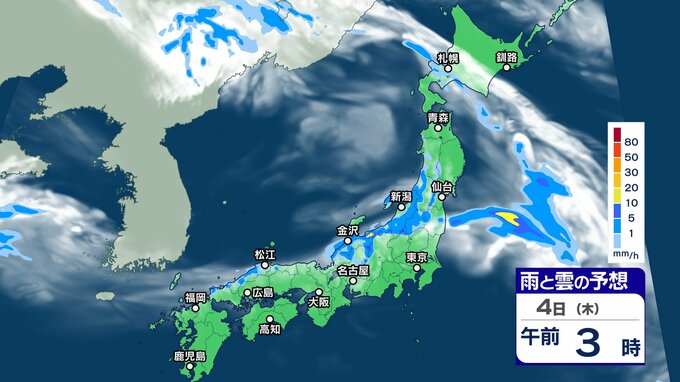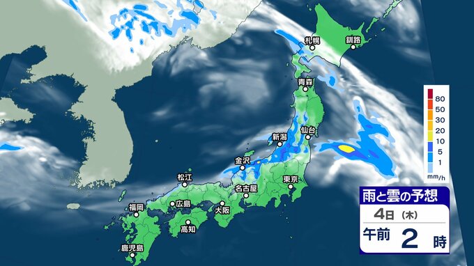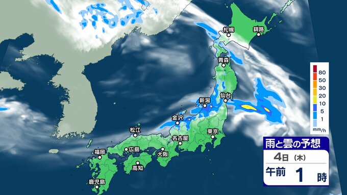 北陸地方と東北地方で大気の状態が不安定【雨と雲シミュレーション】3日から4日にかけて土砂災害、低い土地の浸水、河川の増水や氾濫に警戒呼びかけ 2024年7月2日(火) 18:22 国内 暮らし・マネー 4日(木)雨と雲のシミュレーション