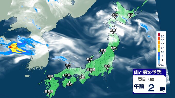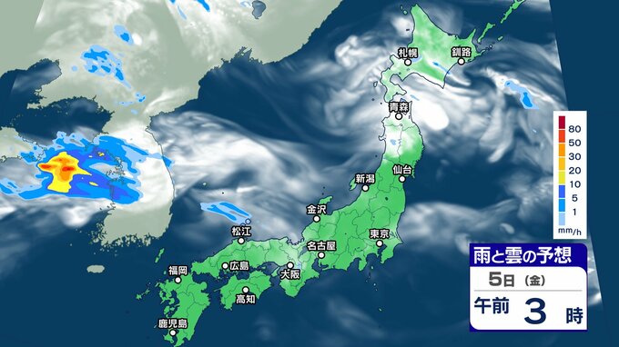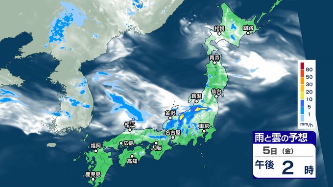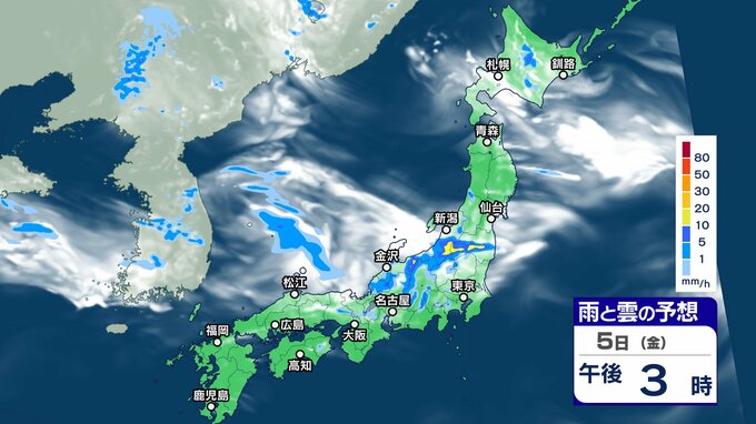 北陸地方と東北地方で大気の状態が不安定【雨と雲シミュレーション】3日から4日にかけて土砂災害、低い土地の浸水、河川の増水や氾濫に警戒呼びかけ 2024年7月2日(火) 18:22 国内 暮らし・マネー 5日(金)午後3時までの雨と雲のシミュレーション
