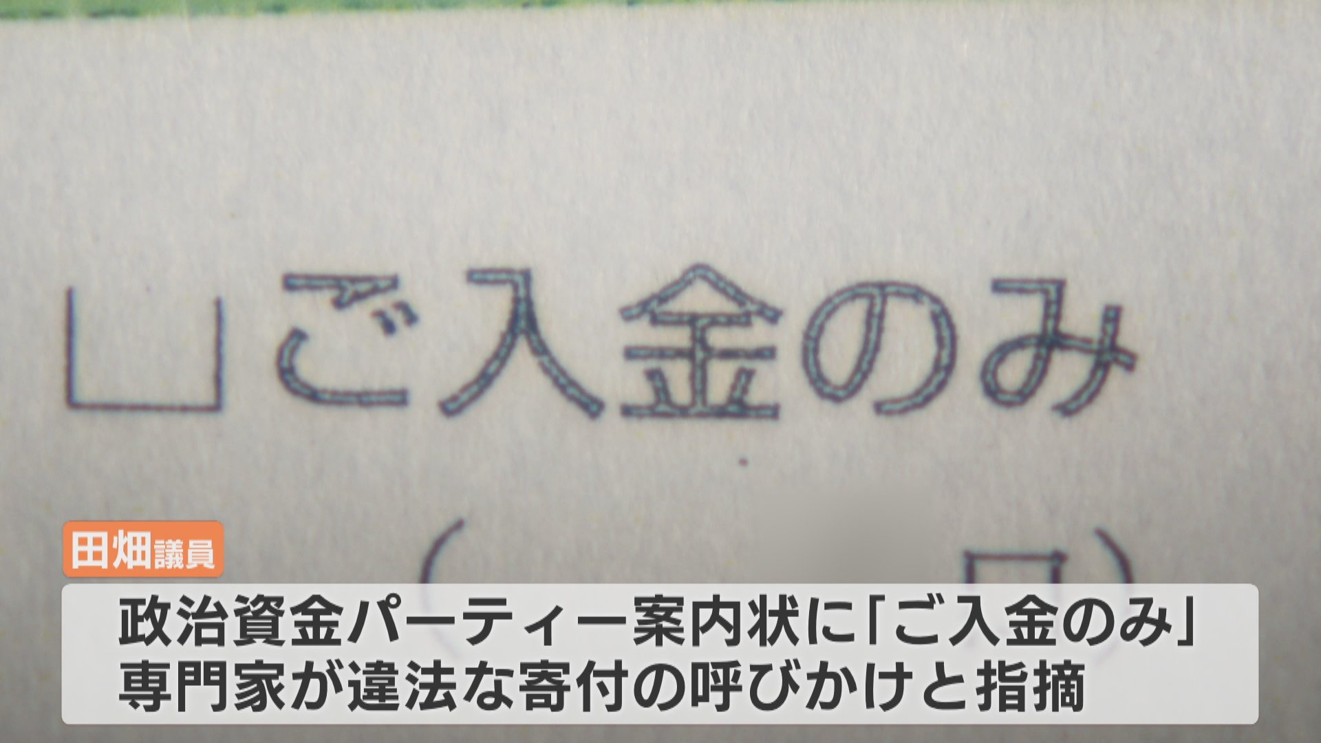 しかし、田畑議員は「ご入金のみ」の記載について、党本部や法律の専門家に問い合わせたところ「何ら指摘を受けなかった」と違法性を否定しています。