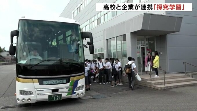 この探求学習には、富山北部高校のくすり・バイオ科の1年生が参加し、担当者の説明にメモに取って真剣に耳を傾けていました。