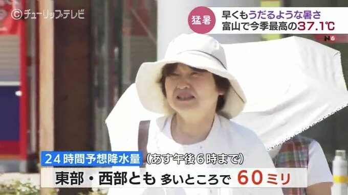 5日の富山県内は晴れて気温が上がり、富山では最高気温37.1℃を観測するなど、すべての観測地点で今シーズン一番の暑さとなりました。あすにかけては激しい雨の可能性も。土砂災害などに注意が必要です。