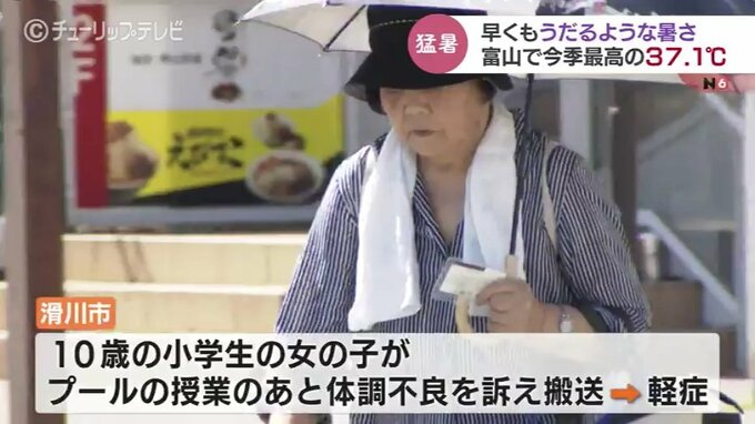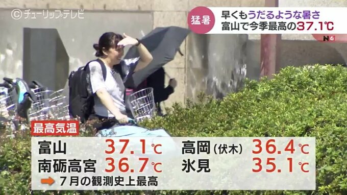 日中の最高気温は富山で37.1℃、高岡市伏木で36.4℃など、県内10ある観測地点すべてで今シーズン一番の厳しい暑さとなりました。