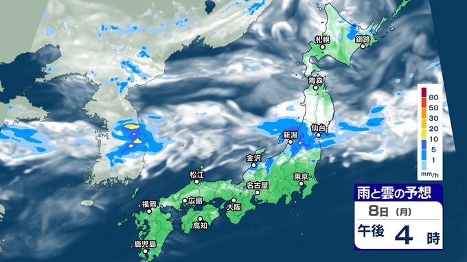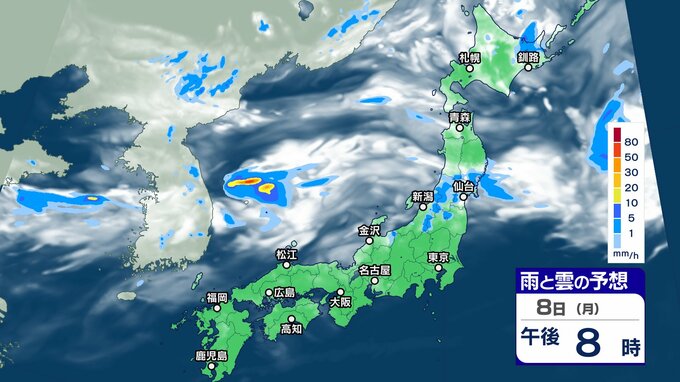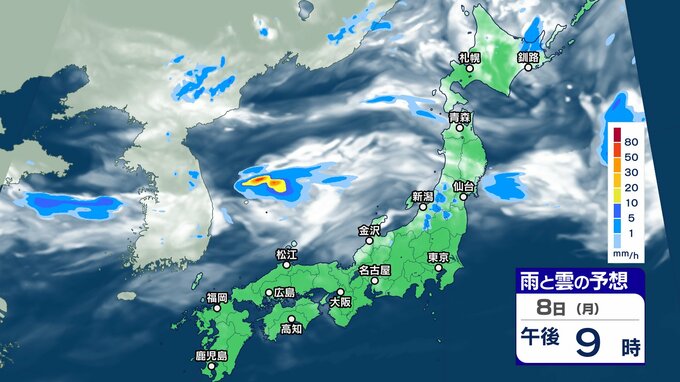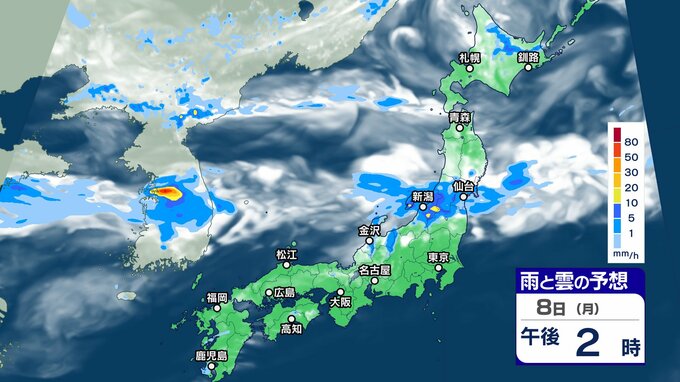 ニュースクリップ 梅雨前線が停滞…大気の状態が不安定【雨と雲の動きシミュレーション】9日にかけ土砂災害、河川の増水などに注意・警戒 2024年7月8日(月) 13:16 国内 暮らし・マネー 8日(月)雨と風のシミュレーション