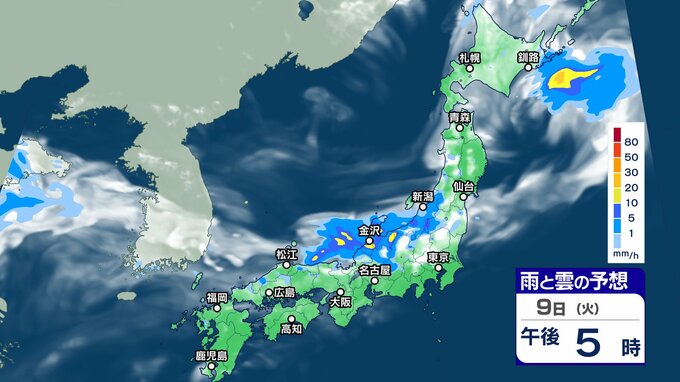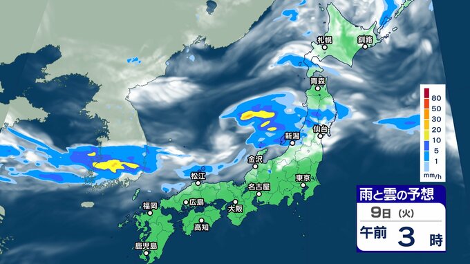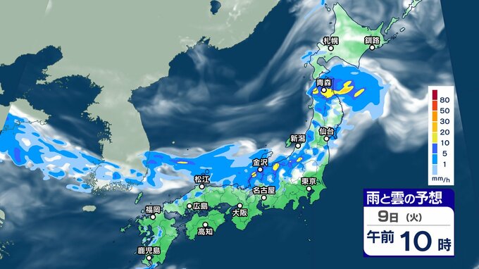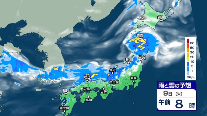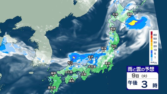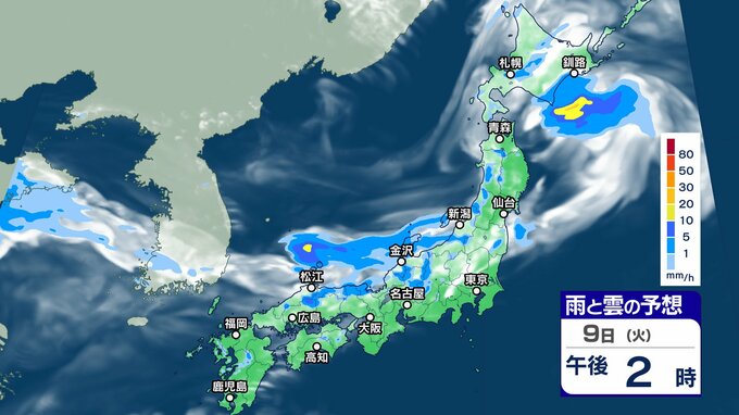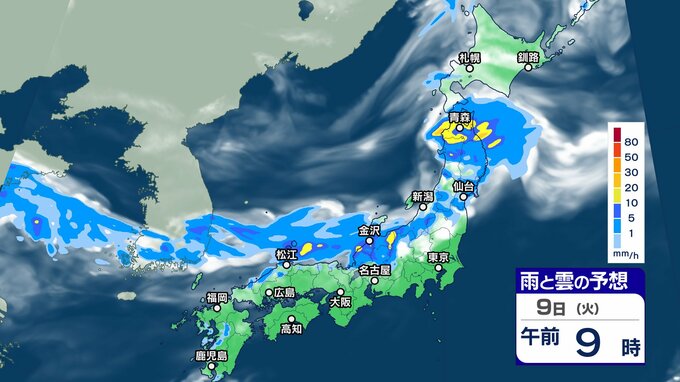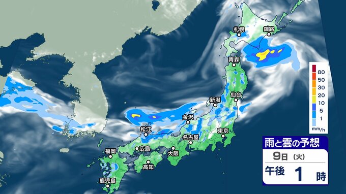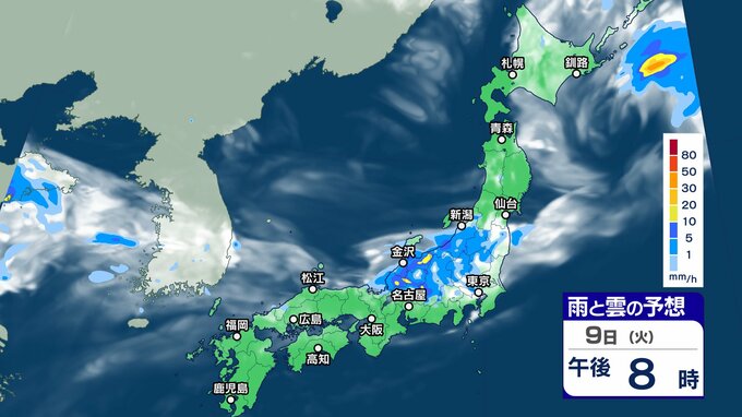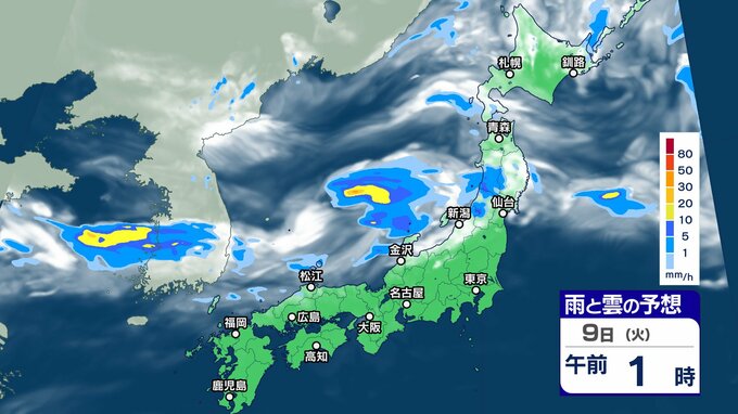 ニュースクリップ 梅雨前線が停滞…大気の状態が不安定【雨と雲の動きシミュレーション】9日にかけ土砂災害、河川の増水などに注意・警戒 2024年7月8日(月) 13:16 国内 暮らし・マネー 9日(火)雨と雲のシミュレーション 午後9時まで