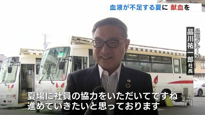 品川グループ・品川祐一郎社長:「お役に立てる活動として、この献血をこれからも夏場に社員の協力を頂いてですね、進めていきたいと思っております」