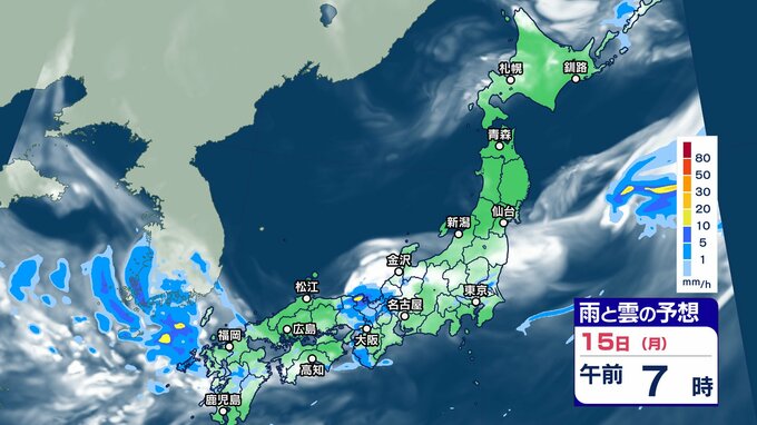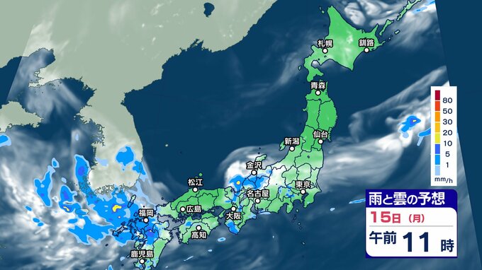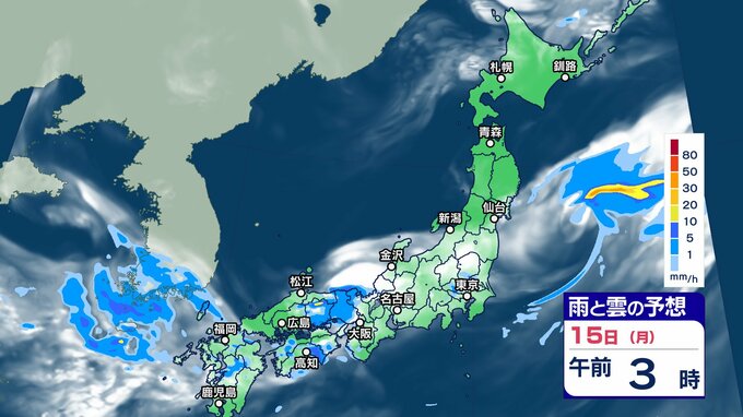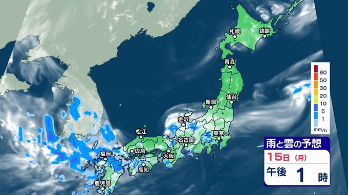 ニュースクリップ 梅雨前線は停滞…3連休の西日本、東日本は雨【雨と雲シミュレーション】太平洋側は土砂災害などに警戒 2024年7月12日(金) 16:26 国内 天気 雨と風のシミュレーション 15日午後3時まで 」