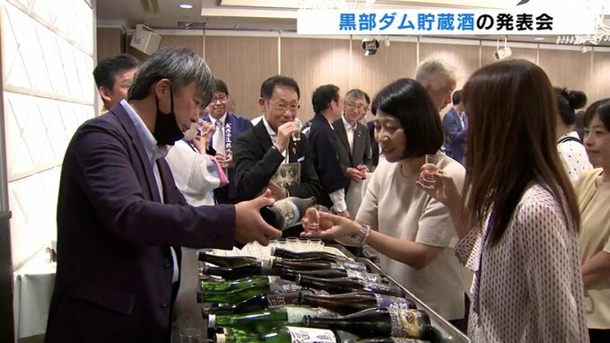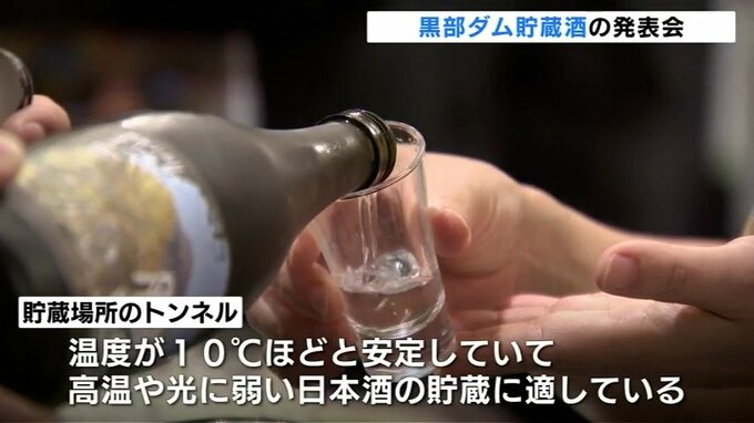 富山県内の酒蔵の選りすぐりの日本酒を黒部ダムで長期間熟成させた貯蔵酒の発表会が、12日開かれました。