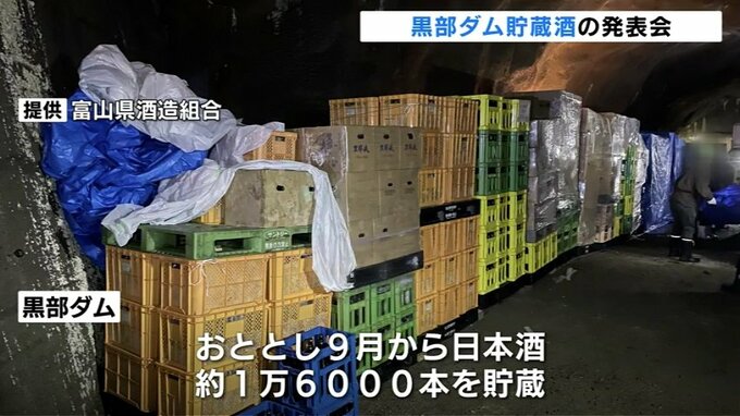 黒部ダムのトンネル(横坑)では、2022年9月から日本酒およそ1万6000本が貯蔵されていました。