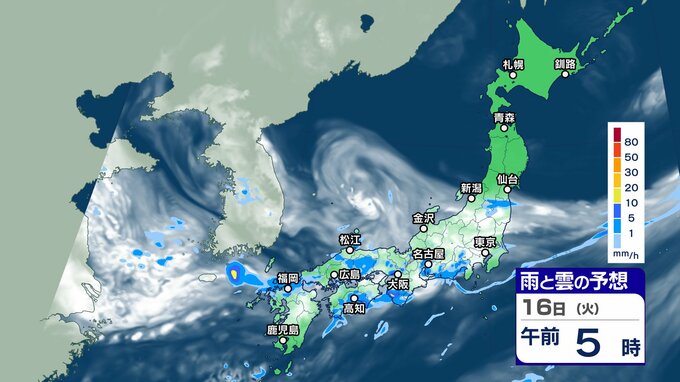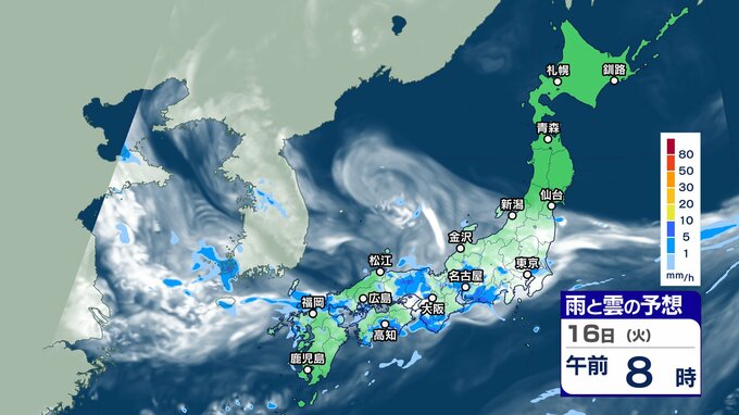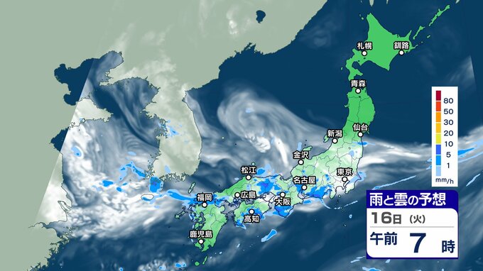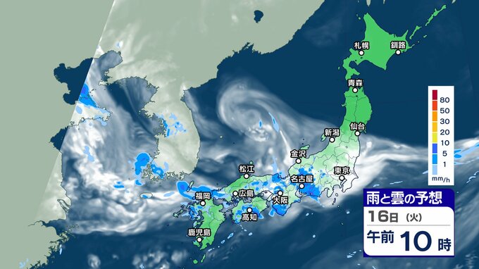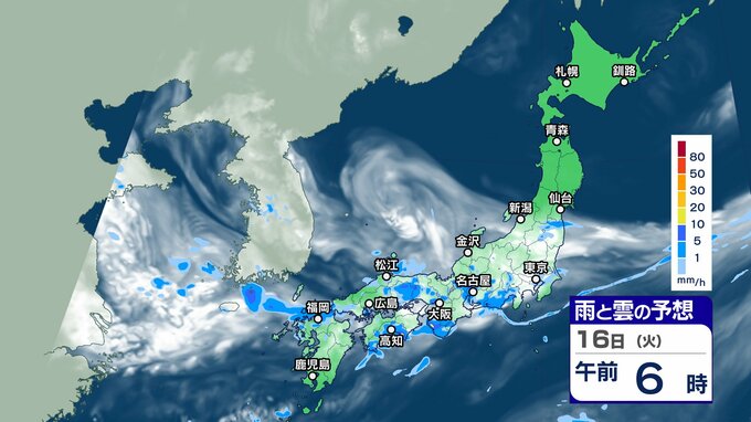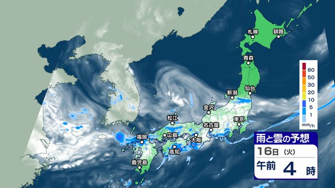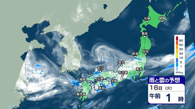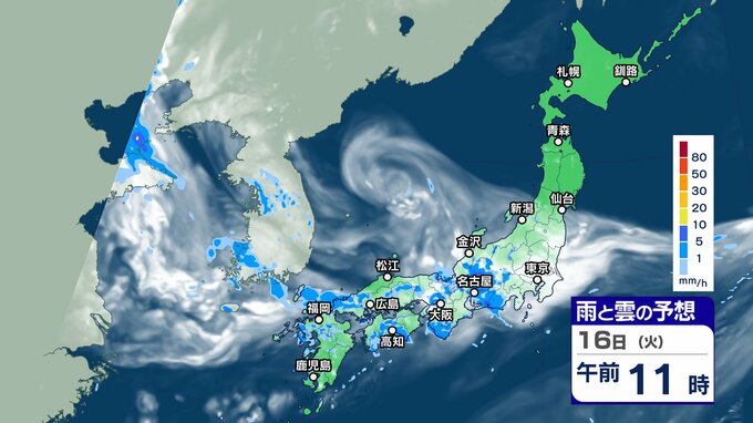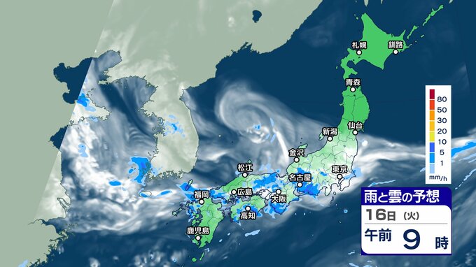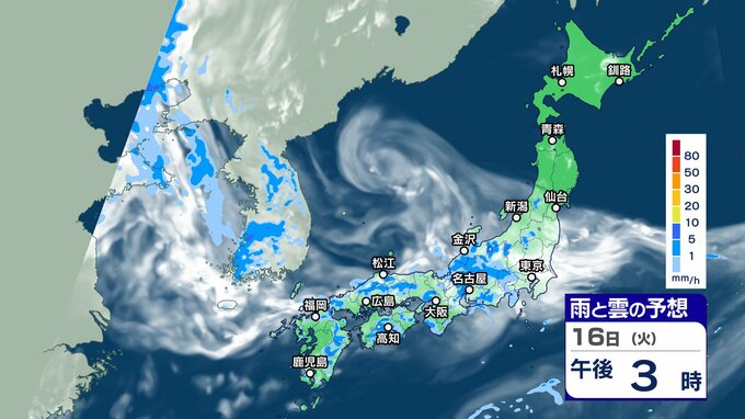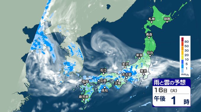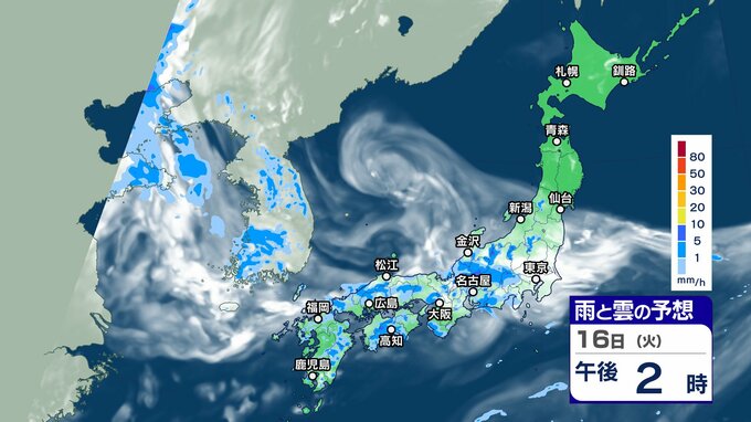 梅雨前線が停滞…九州ではさらに雨量が増える恐れ【雨と雲シミュレーション】中国、四国から関東甲信も雷を伴った激しい雨へ 2024年7月14日(日) 14:25 国内 天気 雨と雪シミュレーション16日 午後3時まで