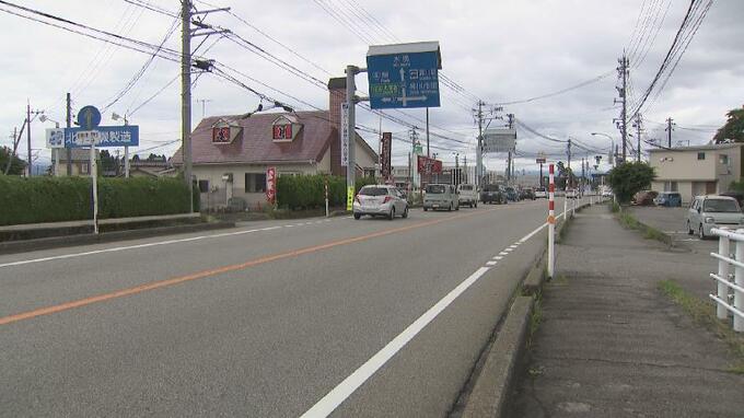 現場は横断歩道や信号機のない片側一車線の直線道路で警察が事故の原因を調べています。