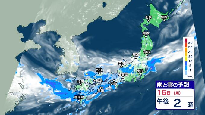 ニュースクリップ 梅雨前線いつ消える?【雨と雲 3日間シミュレーション】九州南部と北部は引き続き厳重警戒 大気の状態が非常に不安定 2024年7月15日(月) 13:48 国内 天気 雨と雲のシミュレーション