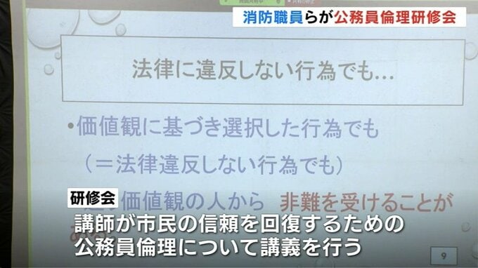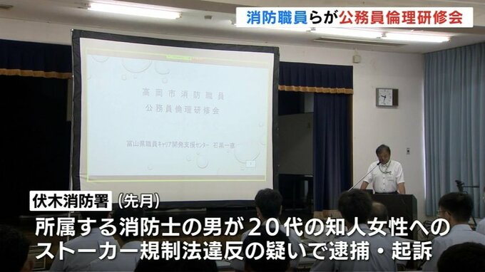 知人の女性にストーカー行為をしたとして富山県高岡市の消防士の男が逮捕されたことを受け、消防職員を対象とした倫理研修会が開かれました。