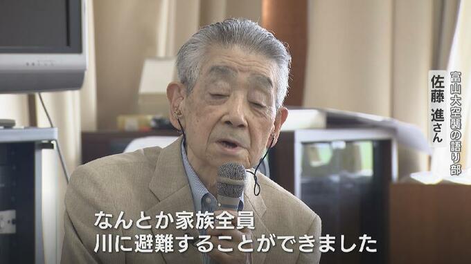 富山大空襲の語り部 佐藤進さん:「なんとか家族全員避難することができました。だけどこの辺はもう火の海になっていた。熱風や煙やが容赦なく襲い掛かってきました」「空襲が終わって川からあがってみると、辺りは一面焼け野原でした」