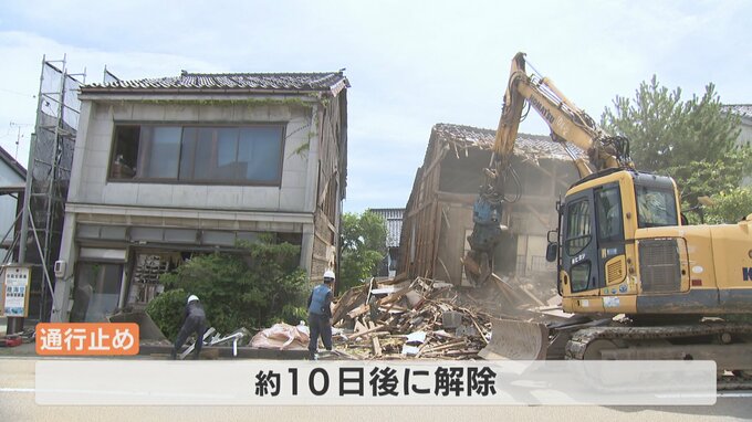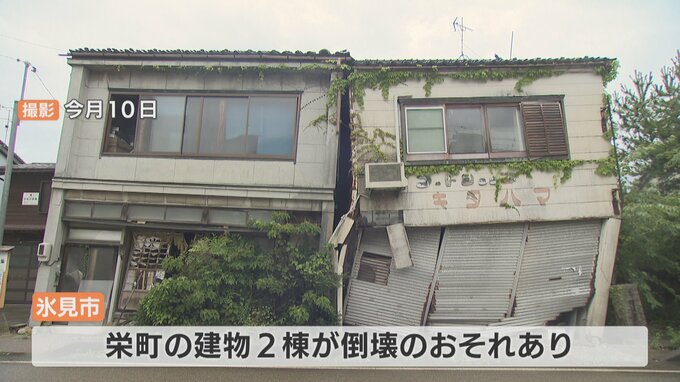 地震で被災した氷見市栄町の建物2棟は倒壊の恐れがあることから、富山県は7月9日から県道薮田下田子線の栄町交差点から間島交差点までの、およそ200メートルの区間を通行止めとしています。