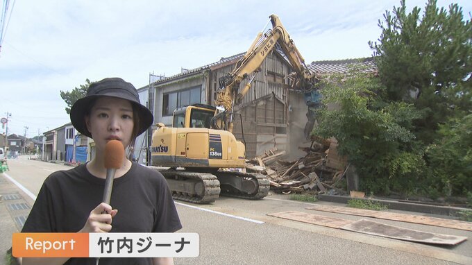 竹内ジーナ記者:「氷見市栄町では、道路に倒壊の恐れのある住宅2棟で緊急解体が始まっています」