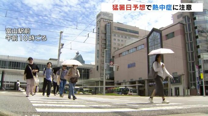 日中の予想最高気温は気温は富山で36℃、高岡市の伏木で34℃となっています。