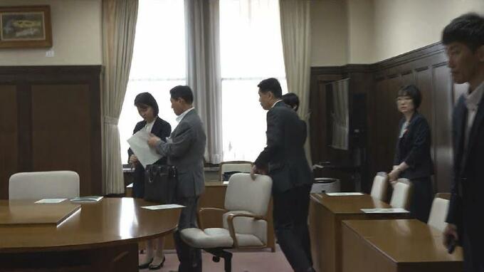 立山町の舟橋貴之町長は19日、富山県庁を訪れ、新田知事に県立雄山高校の募集定員の増加などを盛り込んだ要望書を手渡しました。