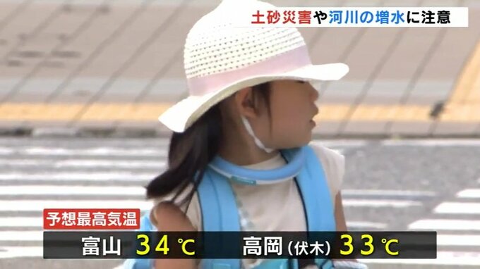 日中の予想最高気温は富山で34℃、高岡市伏木で33℃となっています。