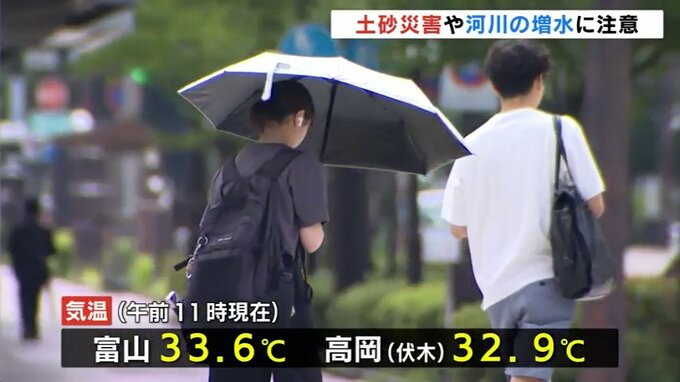 11時現在の気温は富山市で33.6℃、高岡市伏木で32.9℃