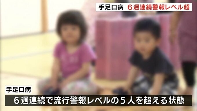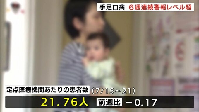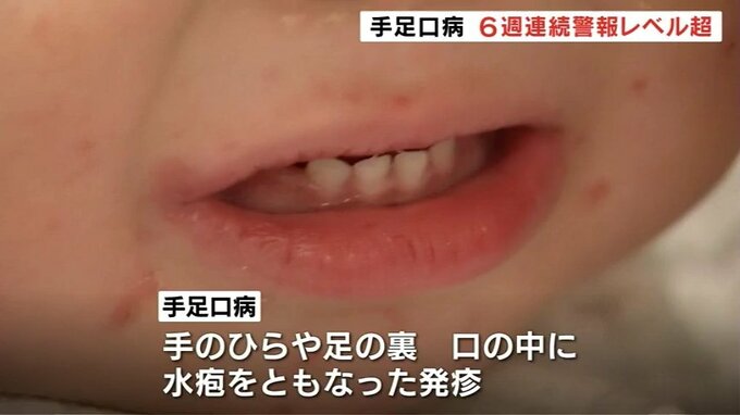 乳幼児がかかりやすいとされる「手足口病」が富山県内で、6週連続で流行の警報レベルを超えています。