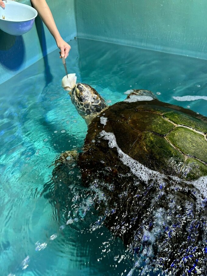 来館者からは、水槽の中で悠々と巨体を動かす姿に「大きいね!」「カメさん!」などの歓声が上がっていたといいます。