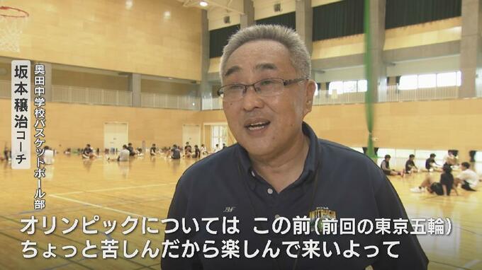 奥田中学校バスケットボール部 坂本穣治コーチ「世界とどれだけの差があるとか色んな面でね実証できる、ましてや2人いるので、あの子たちが中学校時代のバスケットボールというのをちょっと意識しながら楽しんでもらえたらと思っています」