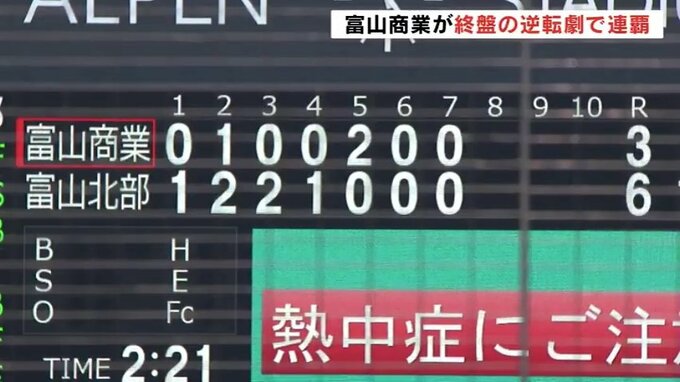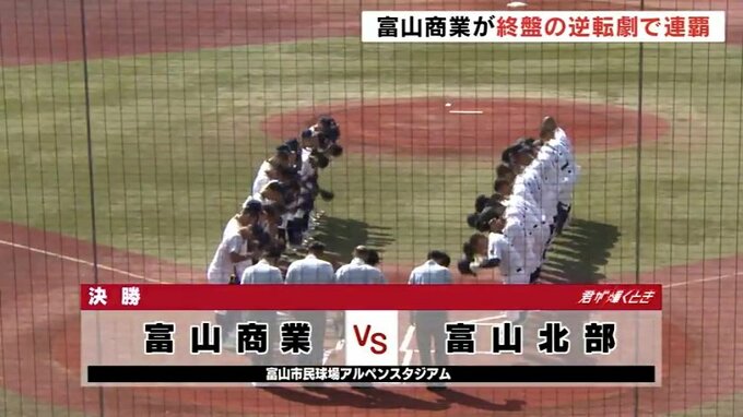 去年と同じ対戦カードとなった決勝は、連覇を目指す富山商業と55年ぶりの甲子園出場を目指す富山北部が対戦しました。