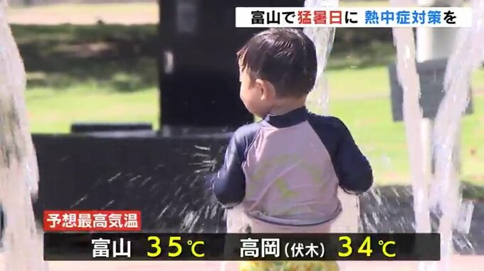 県内はこのあとも気温が上がる見込みで日中の最高気温は富山で35℃、高岡市伏木で34℃と富山では猛暑日となる予想です。