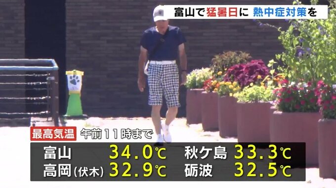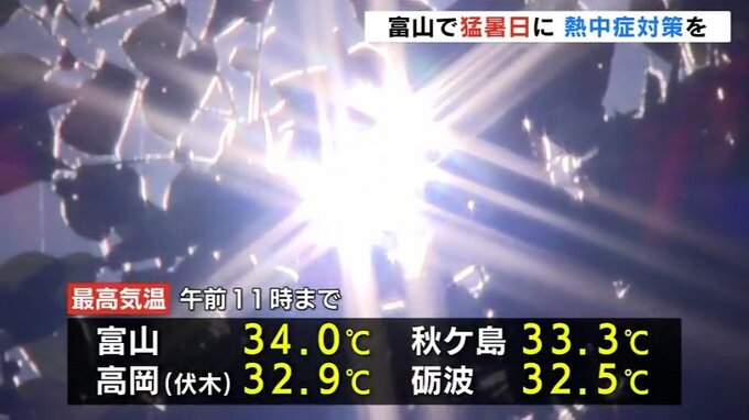 富山県内は朝から各地で30℃を超える厳しい暑さとなっています。このあともさらに気温が上がる見込みで熱中症に注意が必要です。