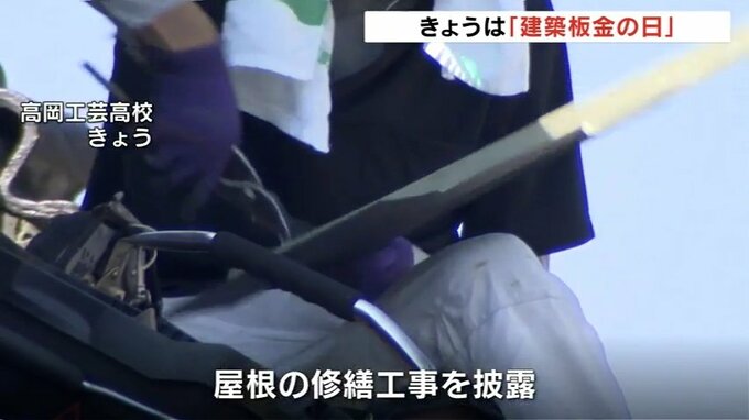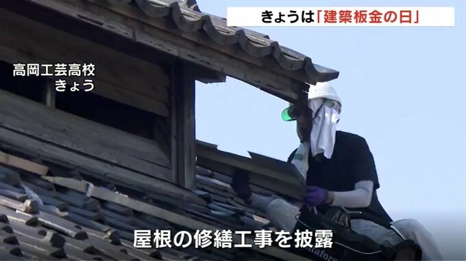 多くの人に建築板金を知ってもらおうと、富山県高岡市の高校で屋根の修繕工事が披露されました。