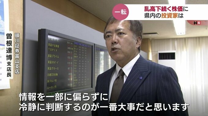 頭川証券富山支店 曽根達博 支店長:「新NISA始まりまして株の経験が浅い方が多いと思います。株価の相場の上下というのはどうしても起こってしまいます。そこでやっぱり焦らないとか怖がらないと。情報を一部に偏らずに冷静に判断するのが一番大事だと思います」