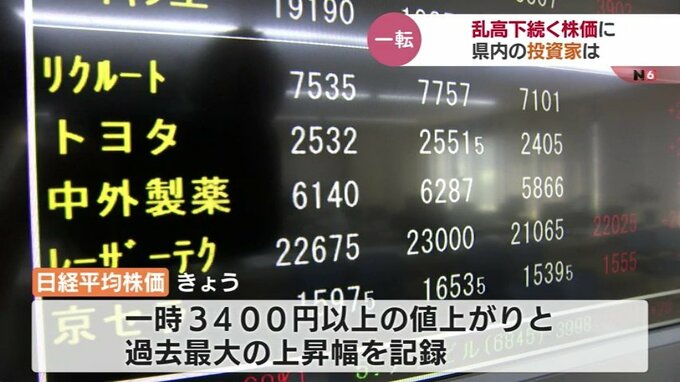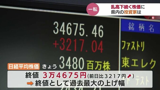 5日に過去最大の下げ幅を記録した東京株式市場の日経平均株価ですが6日は一転、朝から急反発し過去最大の上げ幅で取引を終えました。まさに乱高下が続く株価に、富山県内の投資家の間にも動揺が広がっています。