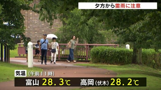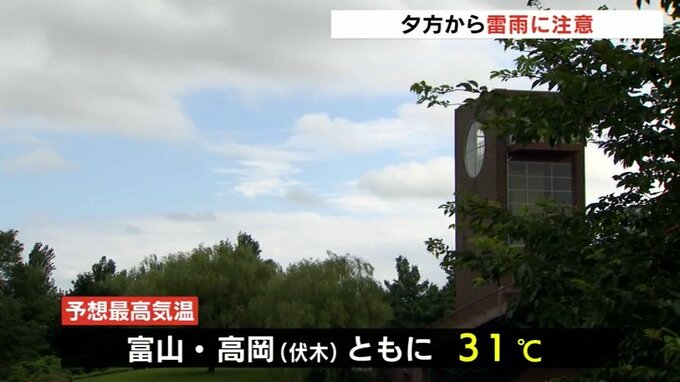 午後からは、だんだんと日差しが届きジメジメと蒸し暑くなり予想最高気温は、富山・高岡とも31度となっています。