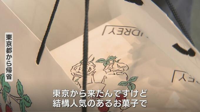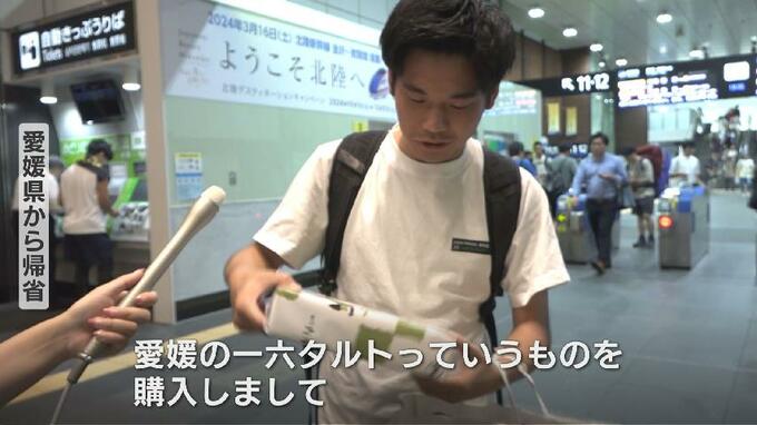 愛媛から帰省 男性「愛媛から来たんですけど、愛媛の一六タルトっていうものを購入しまして」「(家族に)なにがほしい?って聞いたら、真っ先にこれの写真が送られてきて、それですぐに買った」