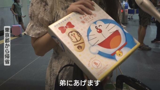 東京から帰省 女性「弟にあげます(記者:どうしてこれを?)(弟が)ドラえもんが好きなので…」