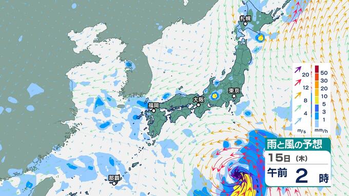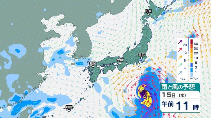ニュースクリップ 【台風情報 13日午後11時40分更新】台風7号 勢力維持して16日に関東直撃か【雨風の動き毎時予測】進路は海面水温の高い海域を北上へ 2024年8月14日(水) 00:11 国内 暮らし・マネー 雨風のシミュレーション15日