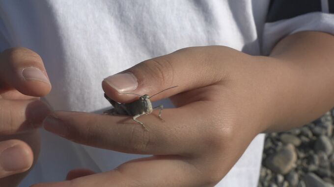 剛くん:「このバッタは逃がします。絶滅危惧種だから生態系には逃がした方がいいんじゃないかなと思うので。一匹目も、絶滅危惧種だから東京に持って帰ってはだめだと思うので、帰る前に逃がします」