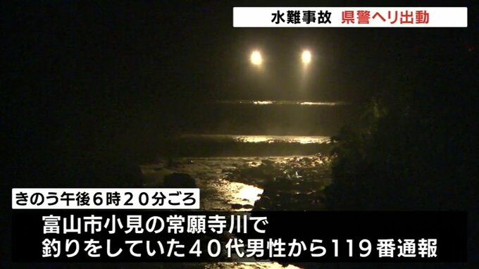 消防によりますときのう午後6時20分ごろ、富山市小見(おみ)の常願寺川で釣りをしていた40代の男性から「水が急に増えて中洲に取り残された」と救助要請がありました。
