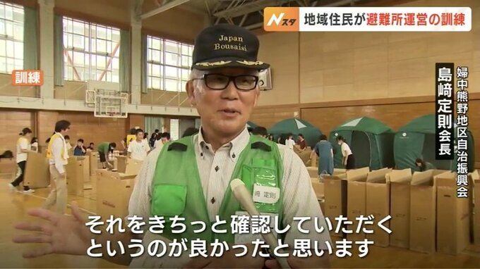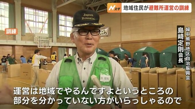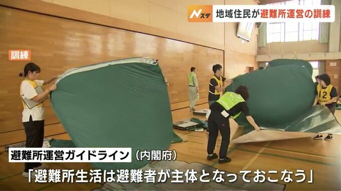 これを受け訓練では、震度6強の地震が発生した場合を想定し、地域住民が、それぞれグループにわかれて、避難所での役割などを確認しました。