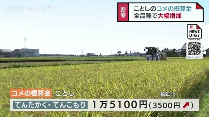 また、「てんたかく」と「てんこもり」も去年より3500円高くなるなど、すべてのうるち米が3年連続増加。概算金の額は直近の10年で過去最高額となりました。