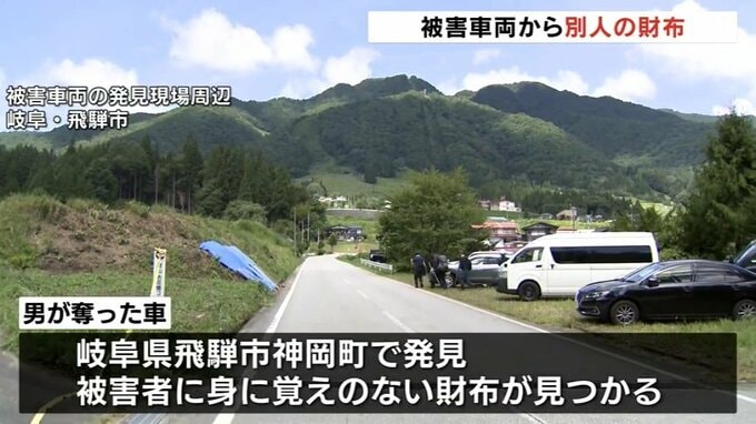 捜査関係者によりますと岐阜県飛騨市神岡町で発見された車内から被害者が身に覚えのない財布が見つかったというです。