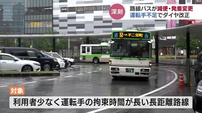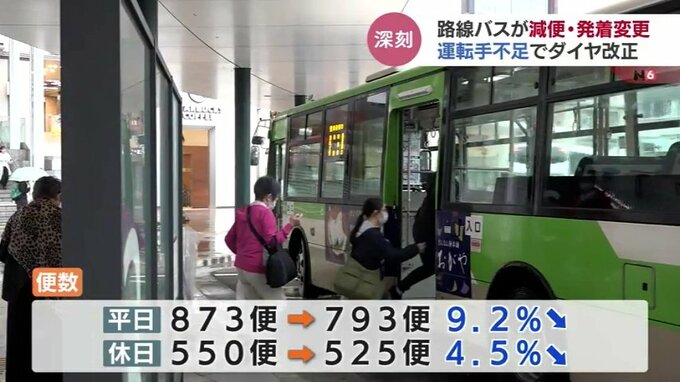 対象は利用者が少なく運転手の拘束時間が長い長距離路線が中心で、便数は平日が873便から793便の9・2%減、休日が550便から525便の4・5%減となります。