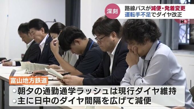 深刻な運転手不足に伴い、富山地方鉄道と加越能バスは10月から路線バスの減便や発着点の変更といったダイヤ改正を行います。特に富山地方鉄道は平日の9.2%減便に踏み切ります。