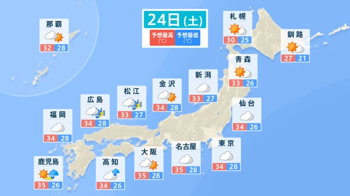 関東甲信地方では、引き続き24日にかけて、大気の状態が非常に不安定となる見込みです。また、25日も大気の状態が不安定となるでしょう。
