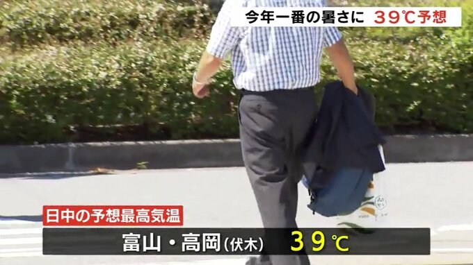 このあとも気温が上がり、日中の予想最高気温は富山市と高岡市の伏木ともに39℃です。