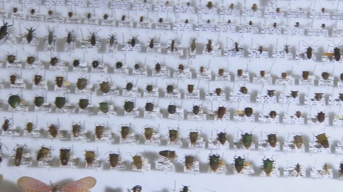 岩田学芸員によりますとカメムシとセミは、口がストロー状になっているなど体の形が共通しているなど、科学的には同じグループだと言います。